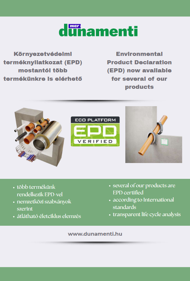 Örömmel jelentjük be, hogy a MCR Dunamenti Zrt. néhány terméke mostantól környezeti terméknyilatkozattal (Environmental Product Declaration, EPD) is rendelkezik. Az EPD hiteles, nemzetközi szabványok szerinti életciklus-elemzés (LCA) alapján készült dokumentum, amely átláthatóan bemutatja a termékek teljes környezeti hatását az életciklus minden szakaszában – a gyártástól a beépítésen át egészen az élettartam utáni kezelésig.