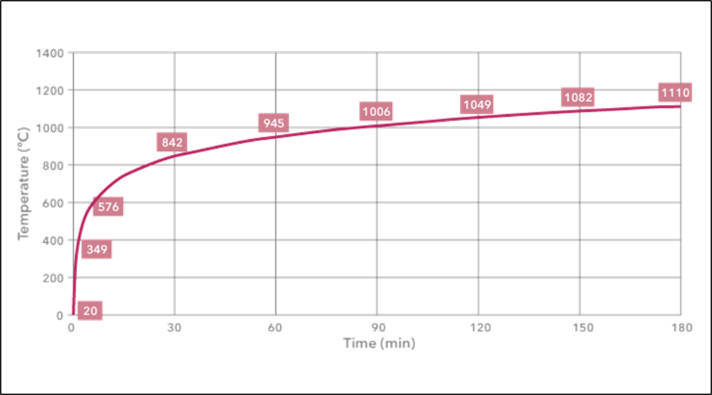 Az európai szabványsorozatok (EN 1363-1, EN 1363-2 és EN 1991-1-2) által megkülönböztetett névleges tűzhatások közül a legáltalánosabban alkalmazott a szabványos ISO834 tűzgörbe (1. ábra), amely cellulózalapú anyagok égését modellezi, tehát egy hétköznapi épületet, funkciót, berendezést feltételez, mint például fa vagy papír égése. Emiatt a tűzvédelmi anyagok, termékek túlnyomó többségének tűzvizsgálati szabványa erre a tűzgörbére validálja a tűzállósági megfelelőséget. A tűzgörbe felfutása viszonylag gyors, 15 perc alatt a hőmérséklet már jócskán 700 °C felett van és végig monotonon növekvő, azonban a növekedés léptéke idővel lassul. A műszaki specifikáció, amely alapján az építési termék betervezhető az adott beépítési feltételekkel és teljesíti a vizsgált tűzállósági követelményt, lehet harmonizált termékszabvány vagy Európai Műszaki Engedély (ETA). A 305/2011 CPR európai rendelet alapján építési termék ezen műszaki specifikációk alapján teljesítménynyilatkozattal (DoP) hozható forgalomba.