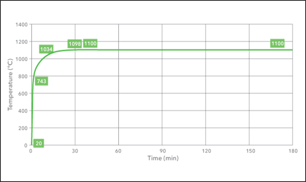 A szénhidrogéngörbe eredendően a petrolkémiai és tengeri (off-shore) olajüzemeknél alkalmazott tűz, ahol az éghető folyadék vagy gőzeinek, gázainak meggyulladása a kockázat, amely egy sokkal magasabb tűzhatással jár, mint a cellulóz alapú tüzek. Ennek a tűzhatásnak sincs lehűlő szakasza, ráadásul magasabb hőmérsékleten, 1100 °C-on tetőzik, amit már 30 perc alatt el is ér (3. ábra). Az eltérés oka, hogy a szénhidrogének hirtelen belobbanása meredekebb emelkedést eredményez, emellett nagyobb hőfejlesztésük pedig nagyobb kitéti hőmérsékletet jelent. Emiatt is és az alkalmazásuk miatt is az ISO834 cellulóztűztől eltérő szabványok vonatkoznak a vizsgálatukra és igazolásukra.